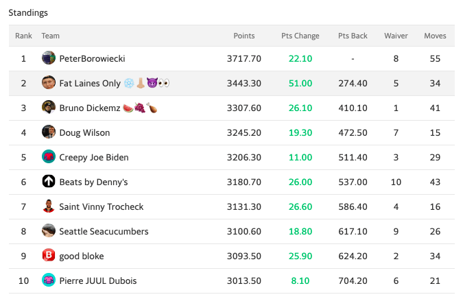 In my fantasy hockey league i’m 270 points back of this idiot in front of me: